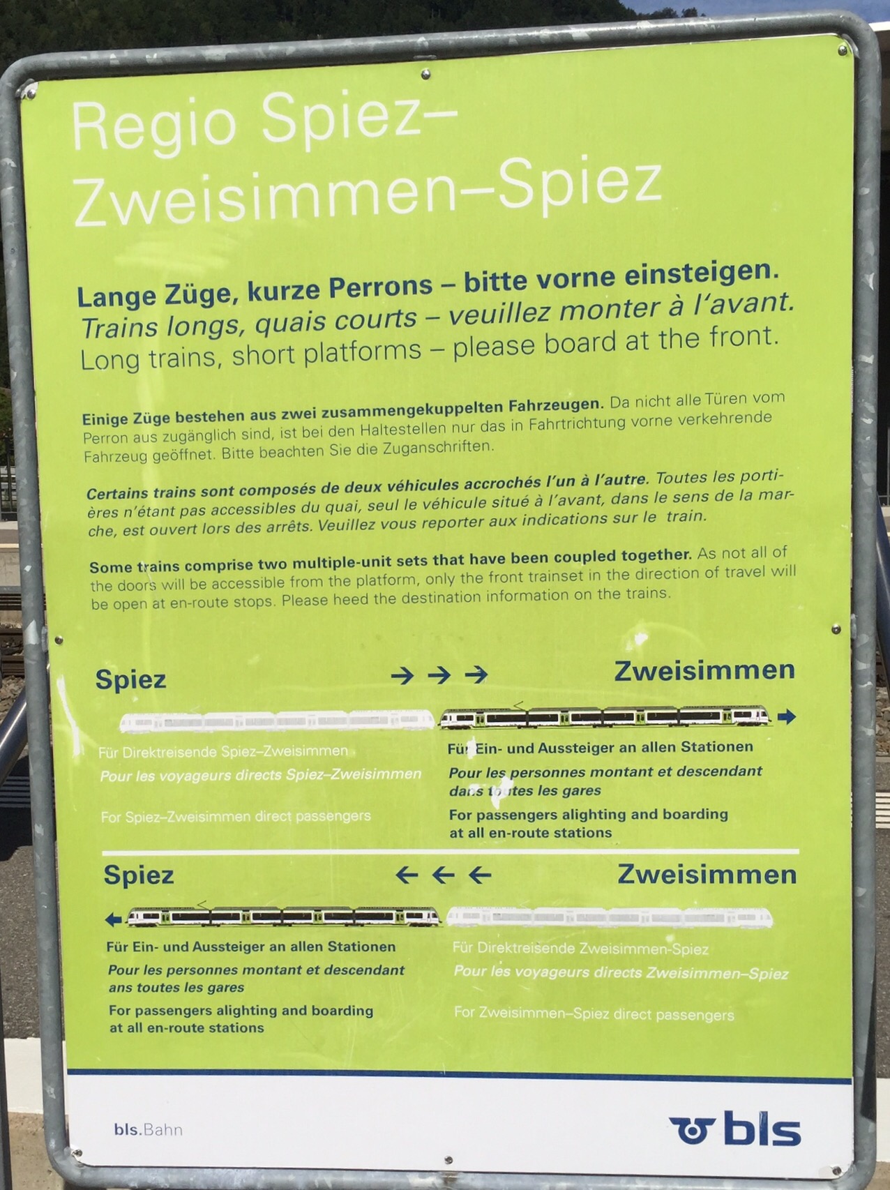 Reisendeninformationen am Bahnhof Wimmis. Früher mal war Bahnfahren einfach!Nur über die eine Schulter zu blicken, ist mir zu einseitig. Also lasse ich mich anschliessend in einem Bus unseres formidabel ausgebauten ÖV auch noch auf die süddlichen Hügel von Thun chauffieren.