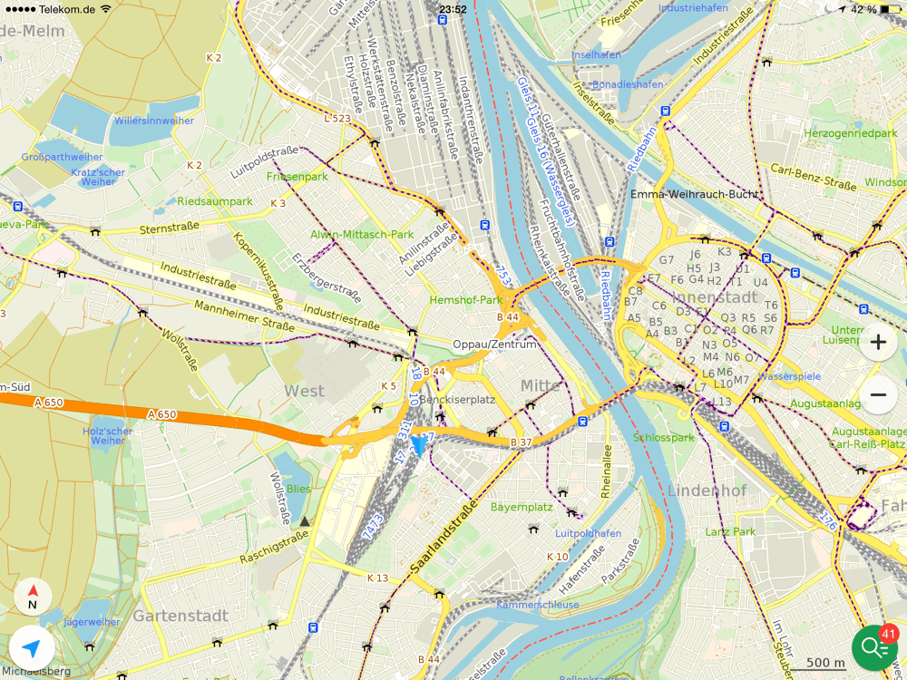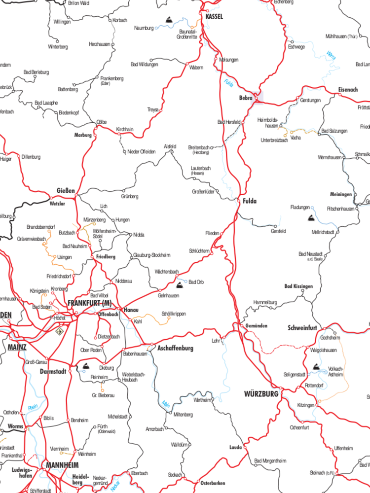 ab Ludwigshafen fahren wir um 08.04 los über Worms – über den Rhein – Biblis – Aschaffenburg.