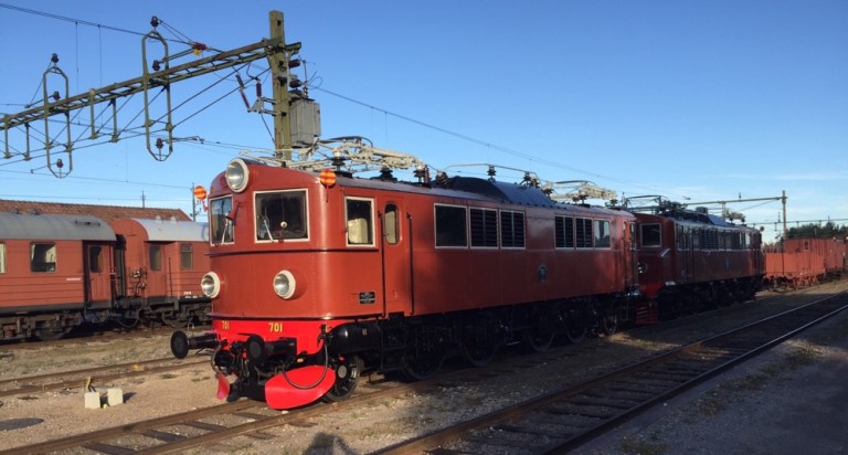 Vorbei an glänzend restaurierten Elektroloks