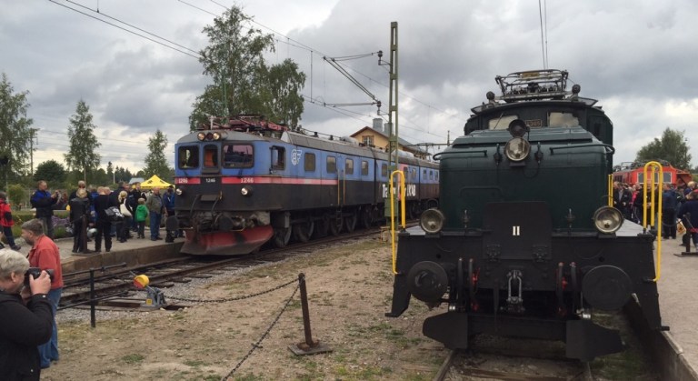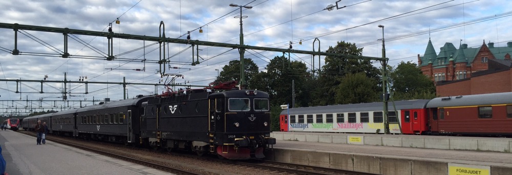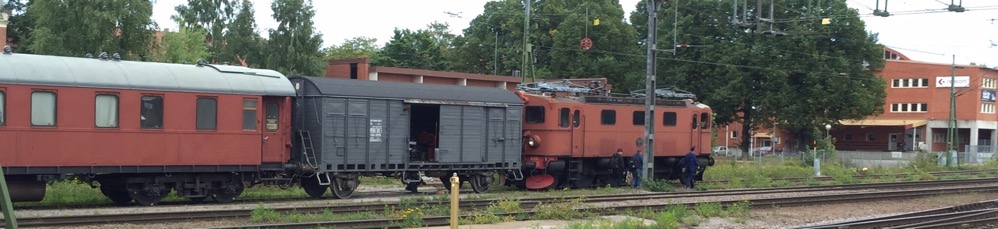 Aus Anlass der Feier 100 Jahre elektrischer Zugbetrieb in Schweden heute Samstag ist unserem Krokodil eine besondere Rolle zugedacht worden: In gemächlicher Fahrt bringt es den Jahrgangszug mit ingesamt 9 Reisezugwagen von Stockholm (Abfahrt 06.22) nach Gävle (Ankunft 11.35).
