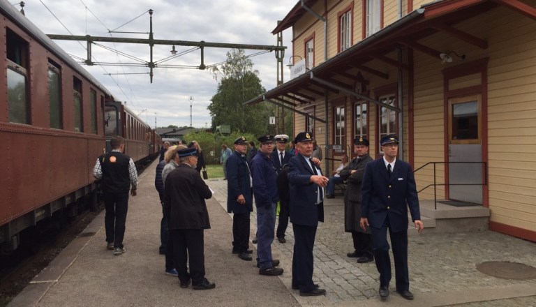 Nicht wenigen, auch mir, treibt es die Tränen in die Augen, als sich unser Krokodil um viertel nach 11 mit lauten Pfiffen bemerkbar macht und dann sanft und doch irgendwie kraftvoll, an uns vorbei zum Hauptbahnhof von Gävle röndelt.