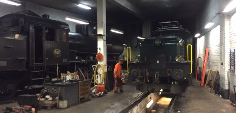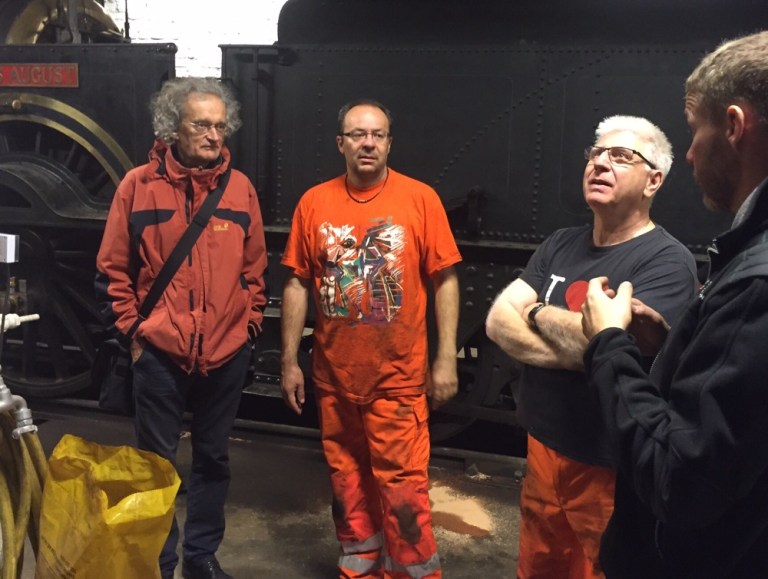 Irgendwann, kurz vor Mitternacht rollt unsere Lok, die neben einer noch älteren Dampflokomotive repariert wurde