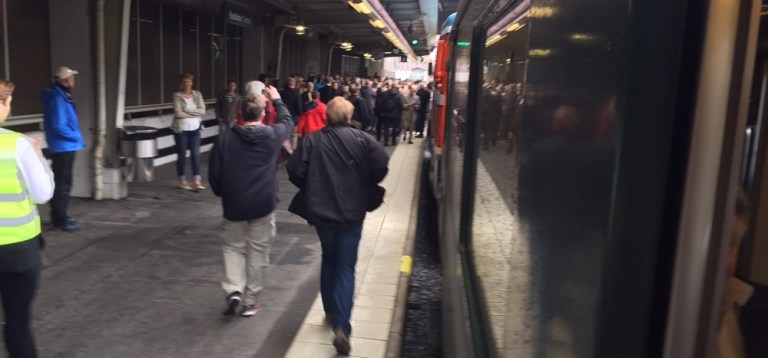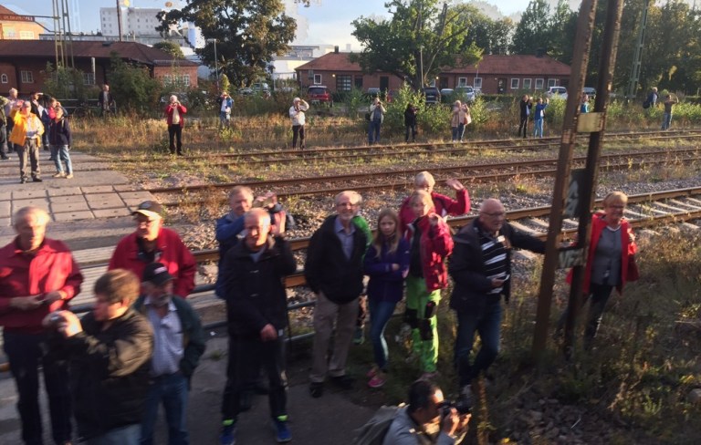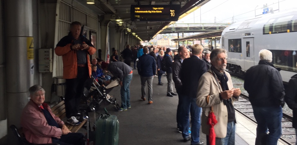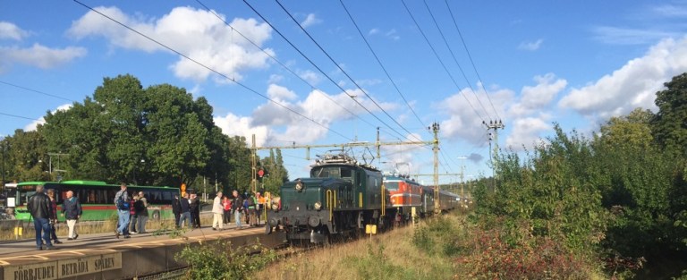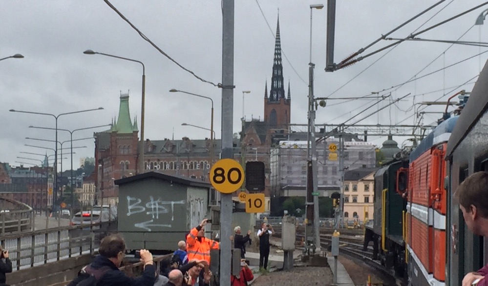 An allen Bahnhöfen und entlang der Strecke auf der nun zu befahrenden alten Stammbahn nach Södertälje Hamn – Nyköbing und weiter warten hunderte von Menschen darauf, einen Blick auf unseren Zug bzw unsere Lok zu erhaschen. Dort wo wir anhalten, rennen Leute herbei, fahren Auto und Wohnmobile vor, sind die Bahnsteige kurzum ülatschevoll von freudig erregten Menschen, total verrückt.