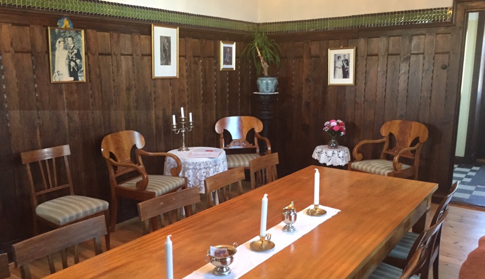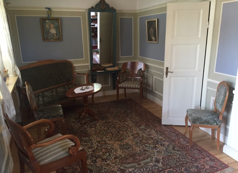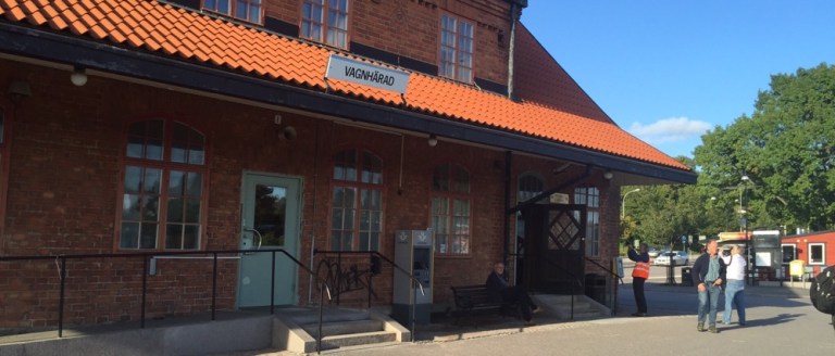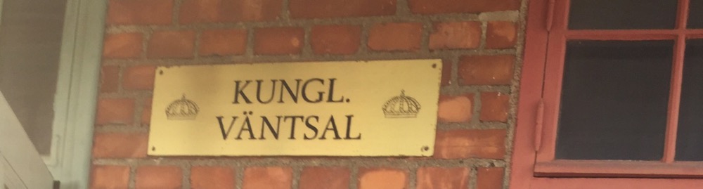 In Vagnhärad einem 2-gleisigen Landbahnhof, wir haben unterdessen über 90 Minuten Verspätung, müssen wir wegen Kreuzungen und Überholungen einen weiteren längeren Aufenthalt in Kauf nehmen, kommen dadurch aber, neben der Möglichkeit schöne Fotos zu schiessen, in den Genuss einer Besichtigung des königlichen Wartesaals.