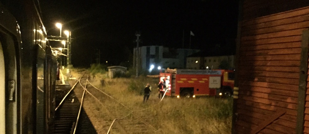 In Mjölby, wo wir einen Teil der Nacht schlafen werden, betankt um 23.23 Uhr die örtliche Feuerwehr unsere Wagen noch mit frischem Wasser. Nun sollte das Frühstück und vorher der nächtliche WC-Besuch definitiv kein Problem mehr darstellen.