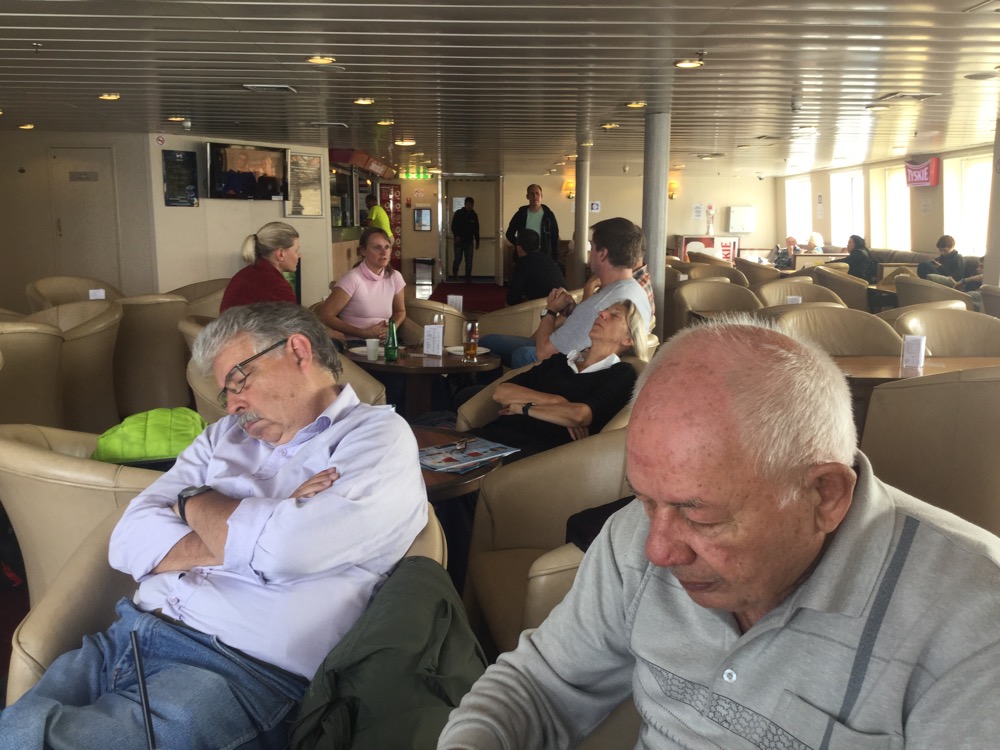 Um 12 treffen wir alle uns im Fährterminal, wo Walter Hofstetter die Tickets verteilt. Kurz darauf können wir an Bord.