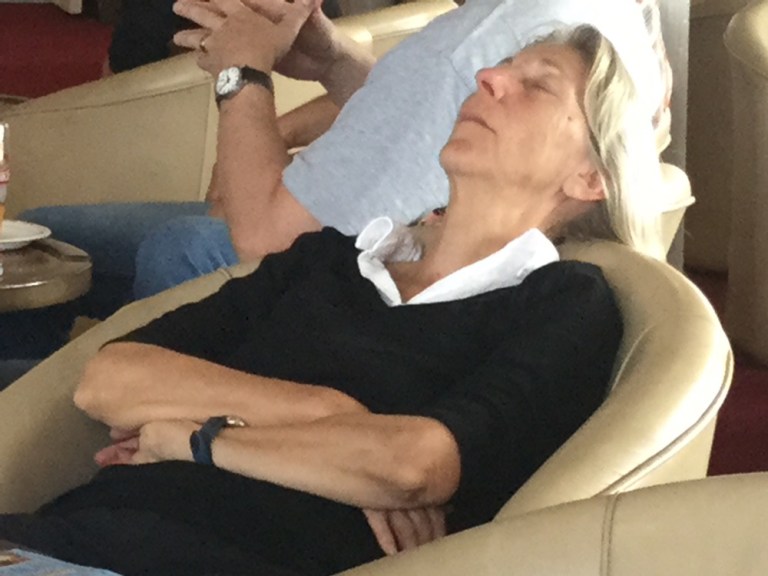 Auf dem obersten Sonnendeck geniesse ich bis zur Abfahrtszeit, um 14.30 Uhr, ein Sonnenbad und einen mittäglichen Schönheitsschlaf.
