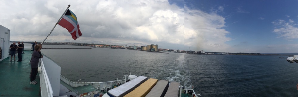 Ich hingegen beobachte derweil den Rangierbetrieb und den Schiffsverkehr. Unsere Fähre, auch auf der Überfahrt nach Polen dürfen wir wiederum nicht mit der Cargofähre übersetzen, liegt seit mehreren Stunden im Hafen.