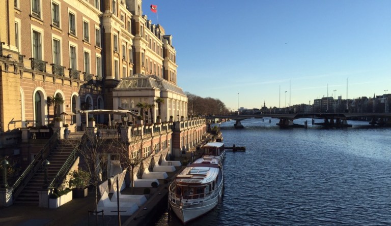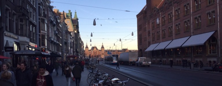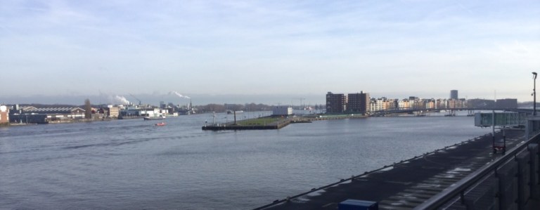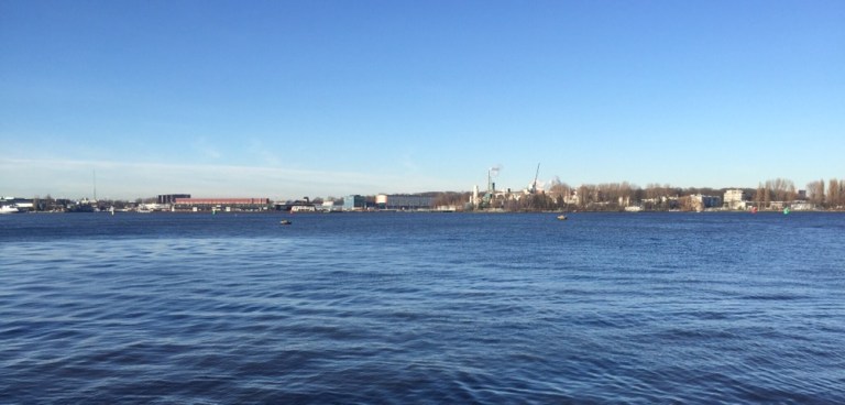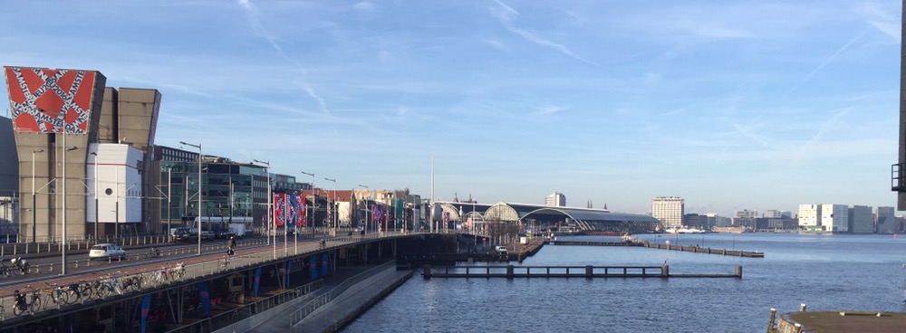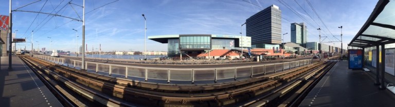 Blick zurück zum Hauptbahnhof „Amsterdam Centraal“