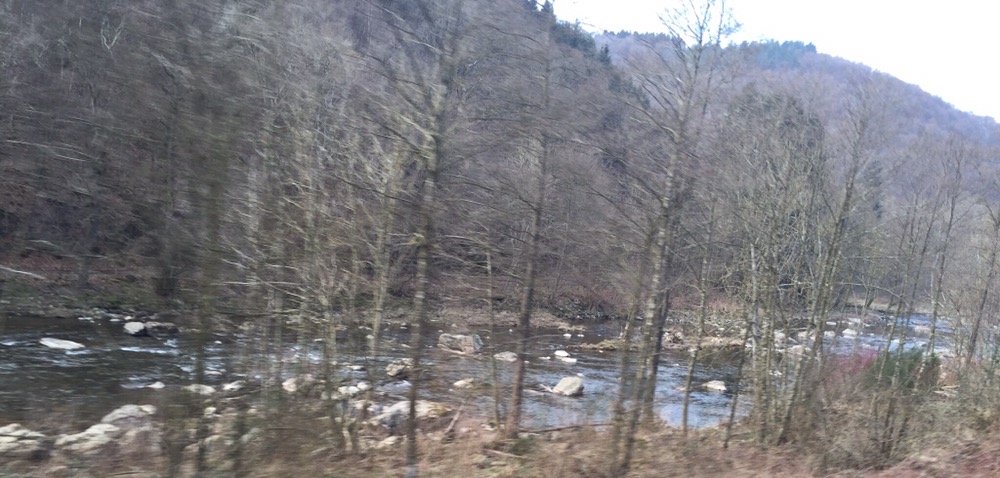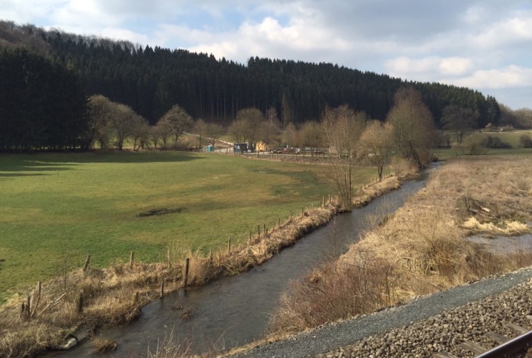 das Bächlein heisst ‚la Salm‘ – endlose Wälder – Trois Ponts – Flüsschen Amblève – Coo (komischer Ortsname) – unzählige Bogenviadukte im Wechsel mit weiten Tunneln –