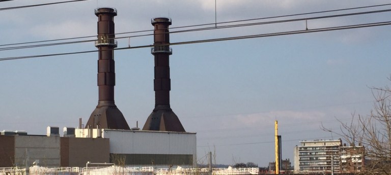 über lange Brücken über die Maas, in einem Gewirr von Schienensträngen, entlang stillgelegter Fabrikschlote