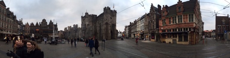 14.08 fahren wir los. Umsteigen in Tourcoing, erneutes Umsteigen in Kortrijk, 15.23 Ankunft in Gent Sankt Pieters, mit ungefähr 3 Stunden Verspätung auf den ursprünglichen Zeitplan.
