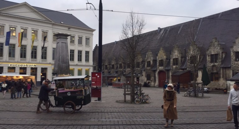 Am Groentenmarkt (https://visit.gent.be/de/groentenmarkt-0?context=tourist), dem ehemaligen Exekutionsplatz der Stadt, laufe ich durch historische Gebäude