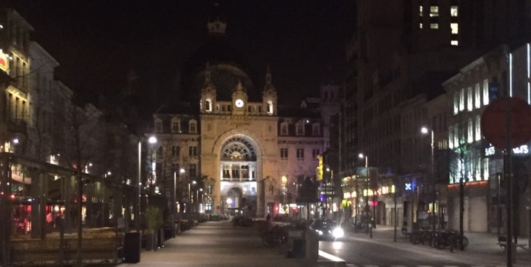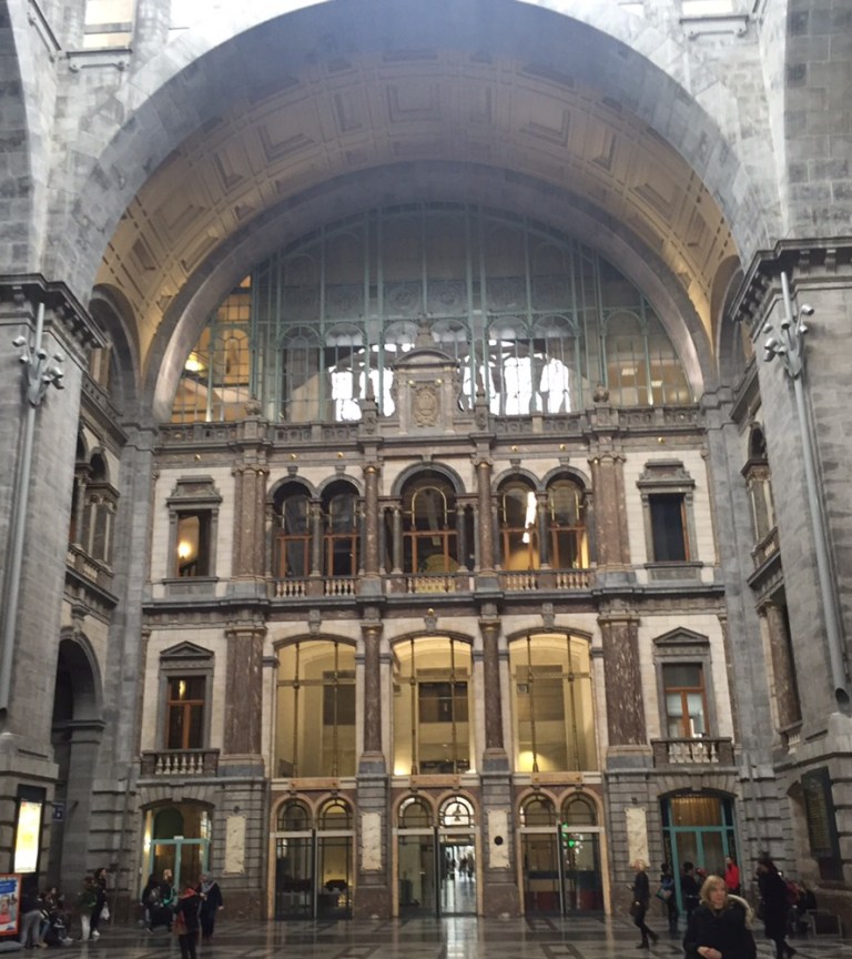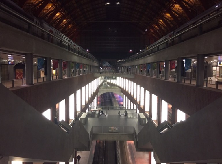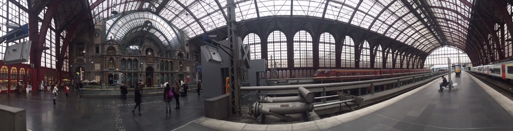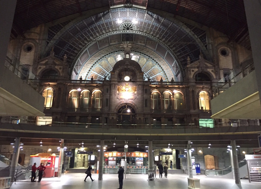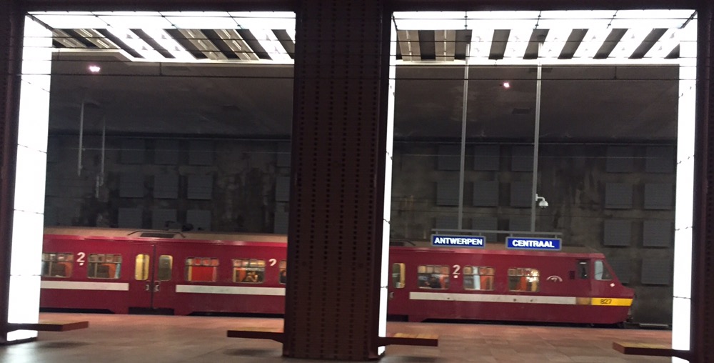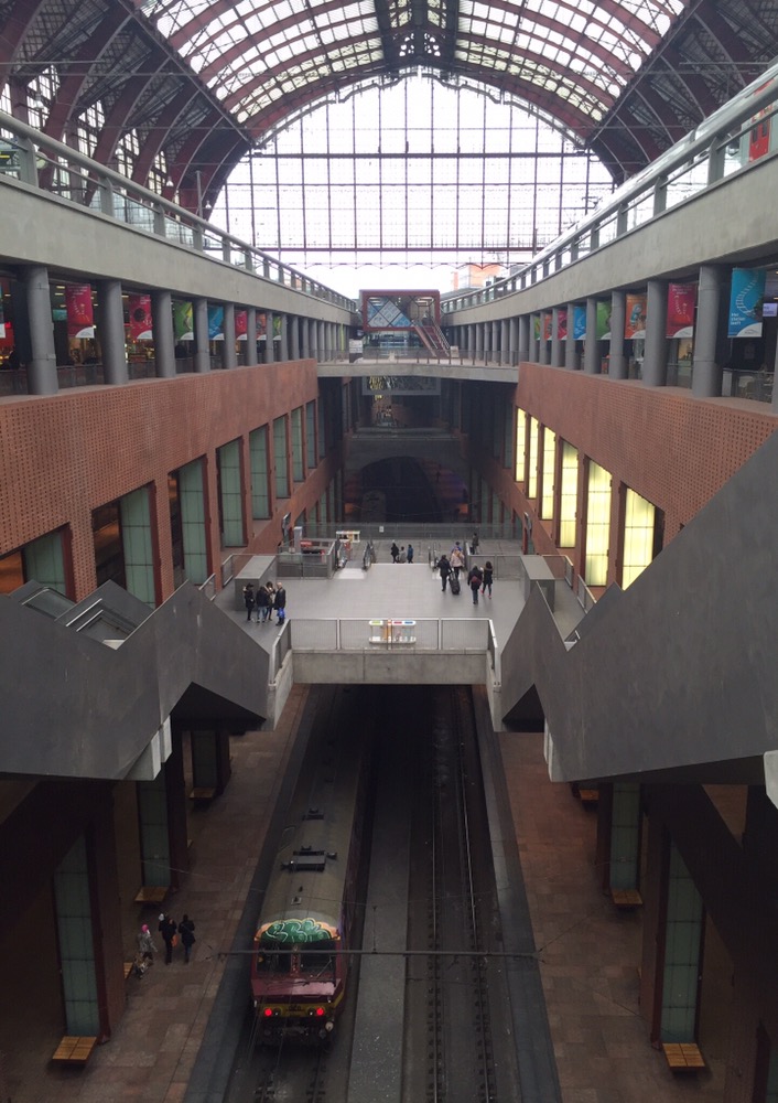 Gegen Mittag raus aus dem Hotel. Mit meinem Bagage am Rücken wandere ich nochmals durch das schöne innere Stadtzentrum, bevor ich mit dem Tram zum Sint Pieterbahnhof rolle. Ungefähr alle 20 Minuten fährt ein Intercity nach Antwerpen. Ich kann grad einsteigen, in einen allzu kurzen Zug, der bis auf den letzten Platz gefüllt ist. Es ist wohlig warm und ruhig, bald schlafe ich ein und verpasse einen Grossteil der einstündigen Fahrt. Beim Aussteigen fällt mir der lichtdurchflutete, fast komplett neu erbaute Bahnhof auf. Besichtigung