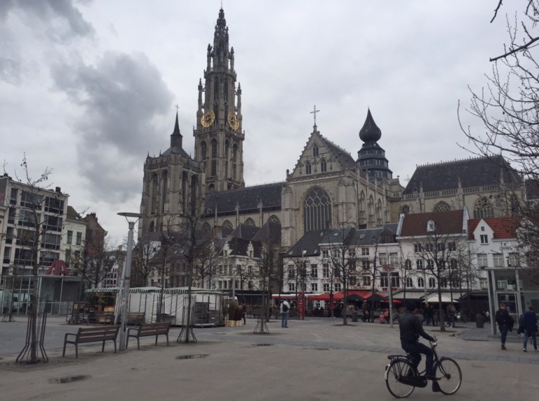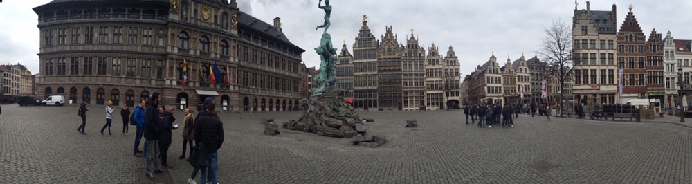 Zoo (hier wird gerade renoviert), Groenplaats (Rubens-Denkmal), am Hilton Palast vorbei zur