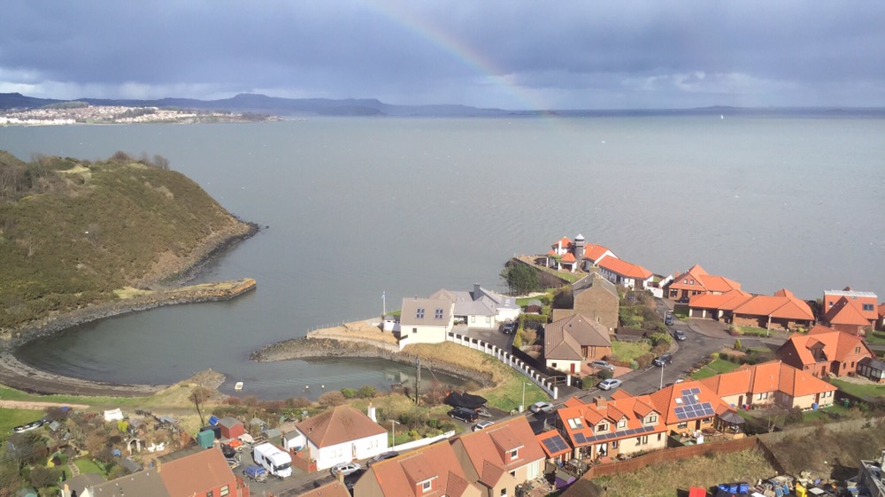 Gegen 12.30 bin ich erneut am Bahnhof. Soeben fährt der erste Zug südwärts. 12.47 fährt ein Expresszug nach Edinburgh. Mangels Rollmaterial besteht er aus 5 Wagen eines Vorortszuges, in dessen einem ich einen hervorragenden Sitzplatz, in einem Vierercoupé, auf der Seeseite, in Fahrtrichtung finde. Pünktlich geht die Reise los. Tolle Fahrt, teils direkt neben