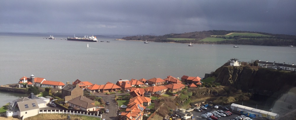 Steilküsten und Sandstränden. Hin und wieder prasselt ein Platzregen und reinigt die Fenster (oder auch nicht). Auf die Sekunde genau um 14.05 erreichen wir Dundee. Nach kurzem Aufenthalt wieder mal eine besondere Durchsage: Der vor uns fahrende Expresszug sei wegen Motorenschadens liegengeblieben. der Aufenthalt in Dundee betrage mindestens 40 Minuten. Ungefähr 10 Minuten später eine erneute Durchsage: die Strecke ist unterdessen frei geworden, wir vermissen aber unseren Lokführer, der hier in Dundee offiziell Feierabend hatte. Wie zur Bestätigung werden die Dieselmotoren abgestellt. Erneute Durchsage nach 5 Minuten: es sei ein Ersatzlokführer gefunden worden, der Zug werde in ungefähr 10 Minuten weiterfahren, Reisende nach Unterwegsstationen sollten aber bitte aussteigen, da unser Zug aufgrund der Verspätung keine Zwischenhalte mehr machen könne. Knapp 20 Minuten nach Ankunft in Dundee fährt unser Zug unvermittelt ab und lässt auf dem Bahnsteig ein paar verdutzte Raucher zurück!