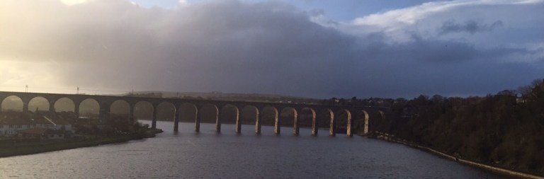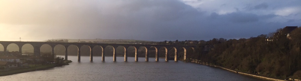 Kurz nach 18 Uhr kann ich endlich aufbrechen, ganz runter in die Stadt laufen, über die grosse Strassenbrücke über den Tweed laufen, Eisenbahnbogenviadukt, alte Bogenbrücke und die Stadt fotografieren, am Ufer des Tweed entlanglaufen und über die alte Bogenbrücke und die Altstadt ins B&B heimkehren.