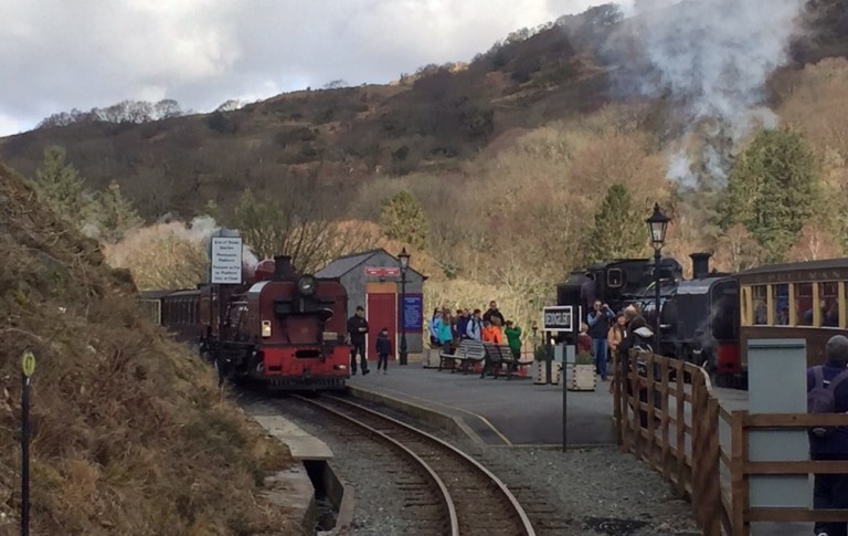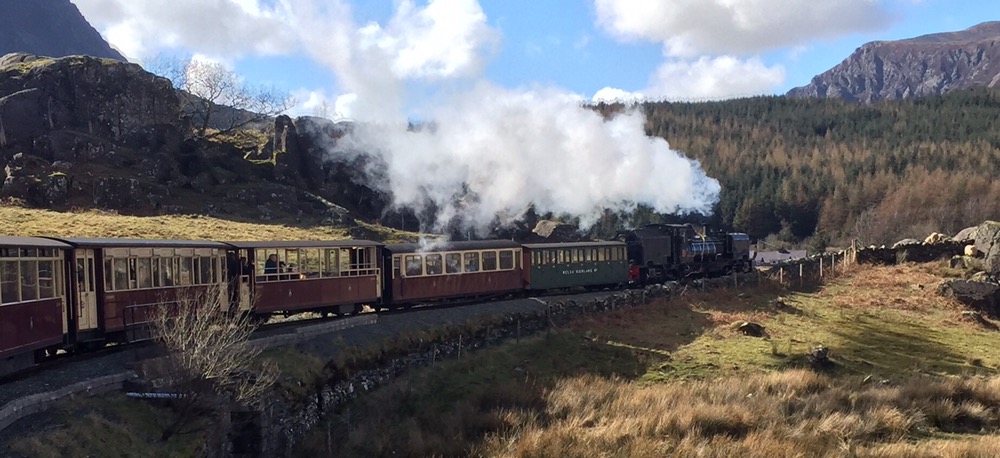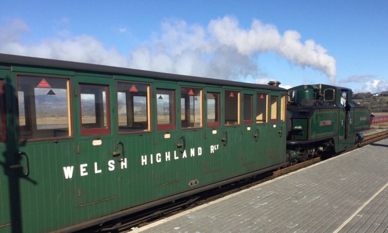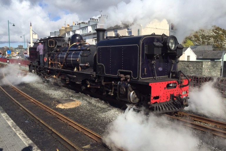 Allzu rasch muss ich den Frühstückstisch verlassen, um mein gestriges Tagebuch fertig zu machen und dann den ersten Zug der Welsh Highland Railway WHR (http://www.festrail.co.uk) nach Caernafon und zurück zu erwischen. Die WHR wurde nach deren Stilllegung in den 1930er Jahren erst vor knapp 30 Jahren streckenweise wiederaufgebaut und 2005 wieder komplett in Betrieb genommen. Die Internetseite http://www.whrsoc.org.uk gibt hierüber umfassende Auskunft und enthält auch weitere Projekte zur erneuten Sichtbarmachung