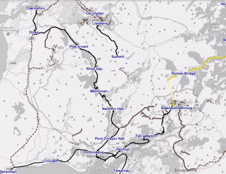 dieses einst umfassenden Eisenbahnnetzes in Wales und besonders rund um Porthmadog. Auf der Internetseite der Open Railway Map http://www.openrailwaymap.org findet Mann/Frau weitere Details, wie auch jede Karte mit Schwerpunkt Eisenbahn, weltweit. Die Wikipediaseite http://wiki.openstreetmap.org/wiki/DE:OpenRailwayMap liefert weitere Erklärungen zu diesem gigantischen Projekt.