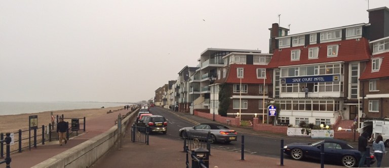 Stanford, endlich sitze ich in einem komfortablen englischen Pendolino und rase gen London zu. Draussen hat der Regen aufgehört, ein paar blaue Himmelsflecken sind zu sehen, noch immer stehen aber Felder und Äcker unter Wasser. Die online Wetterprognose verspricht im Süden der Insel noch besseres Wetter. In Ashford, der letzten Einsteigestelle für den Channel findet sich kein einziges freies Hotelbett. Fündig werde ich aber in Hythe, 7 Kilometer neben Folkestone. Das Best Western Hotel Stade Court verspricht sogar einen Gratis-Transfer ab Bahnstation ins Hotel. Kurz entschlossen buche ich für 2 Nächte. London Euston an 15.59. Es ist trockenes Wetter und auch sehr mild!