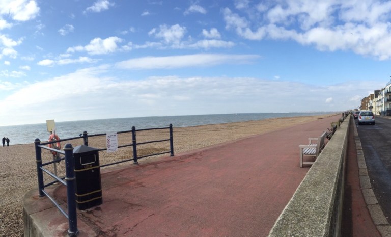 10.15 mit Taxi nach Folkestone. gutes Gespräch mit dem Täxeler über die Sorgen der Engländer und das schöne Leben hier an der südenglischen Küste.