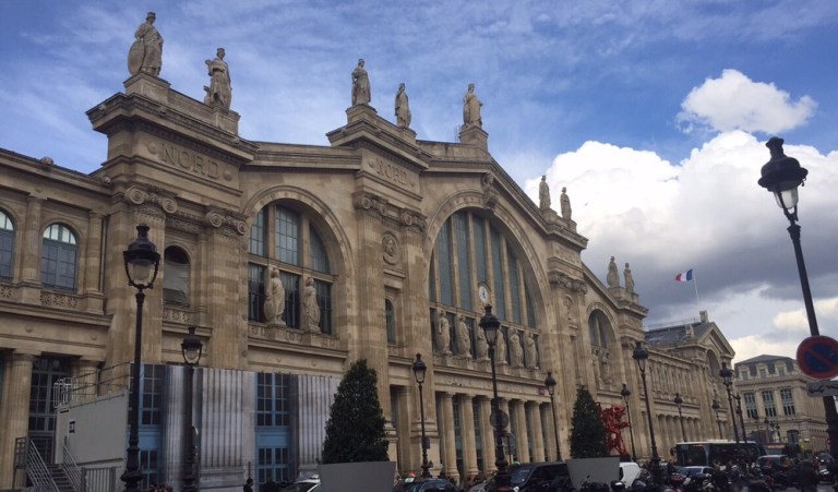 16.55, MESZ, mit einer Verspätung in Paris, Gare du Nord, fast schon sommerlich warm, viel Volk im Bahnhof, Drängler allenthalben, mache einen Spaziergang Richtung Ostbahnhof und weiter, nehme nach 15 Minuten laufen ein Taxi zum Lyonerbahnhof.