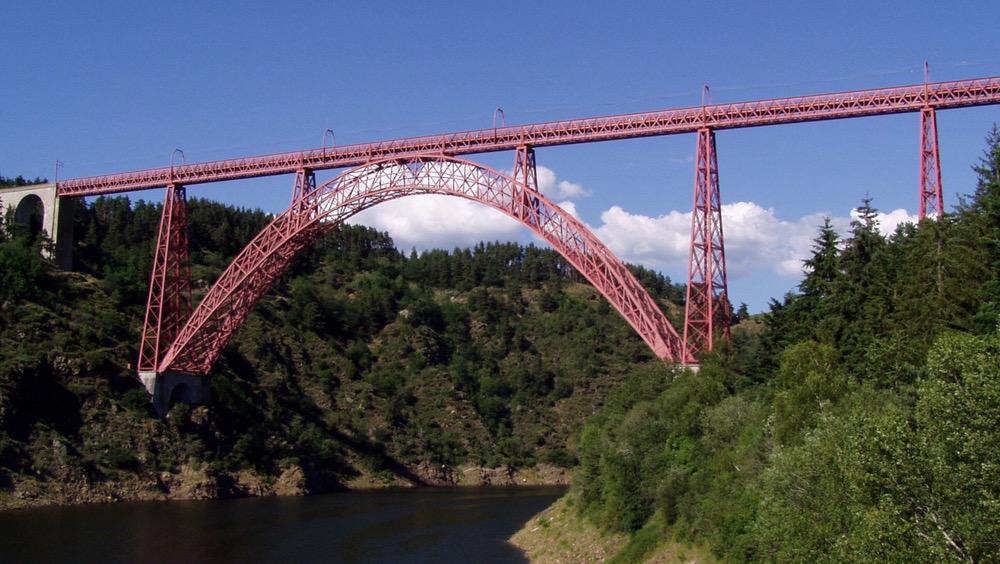 Diese über 560 Meter lange und mehr als 120 Meter hohe Stahlbogenbrücke, wurde vor über 135 Jahren von Gustav Eiffel und seinen Männern erbaut. Es gäbe noch tausend andere Dinge über diese einmalig schöne Eisenbahnstrecke zu berichten (Saint Flour Chaudes Aigues und seine Zwillingsburgen, Bussenregimes der SNCF, Umsteigen in Neussargues, Mitreisende und SNCF-Personale, Hochwasser, rauchende Vulkane, usw)