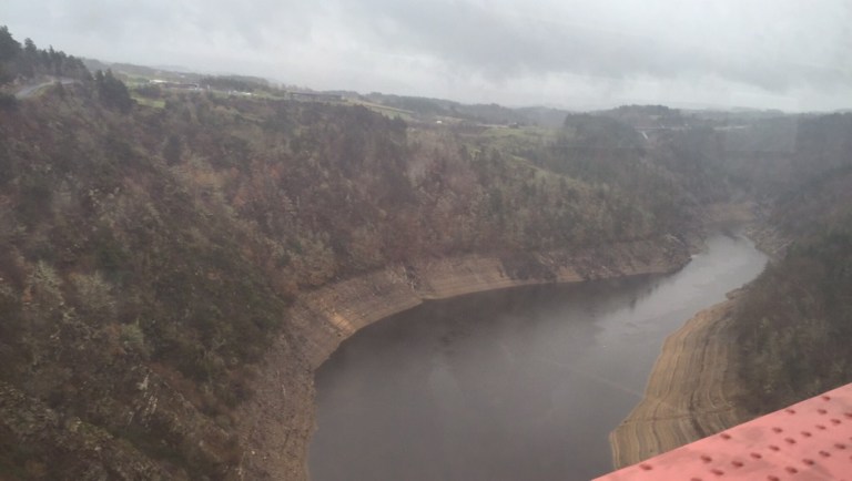 30 Kilometer weiter nähern wir uns einem weiteren Höhepunkt dieser Reise, dem Viaduc de Garabit (https://de.m.wikipedia.org/wiki/Garabit-Viadukt). Ein in Wikipedia geklautes und 2 eigene Fotos zeigen diesen tollen Eiffelbau bzw die Aussicht. Eine gewisse Ähnlichkeit besteht auch mit den Kirchenfeld- und Kornhausbrücken in Bern. Diese sind ja auch von Eleven von Eiffel konstruiert worden.