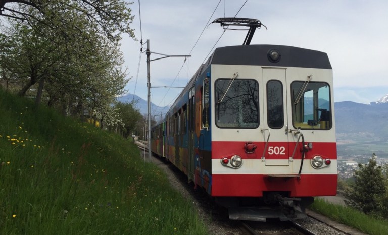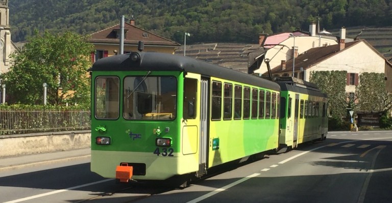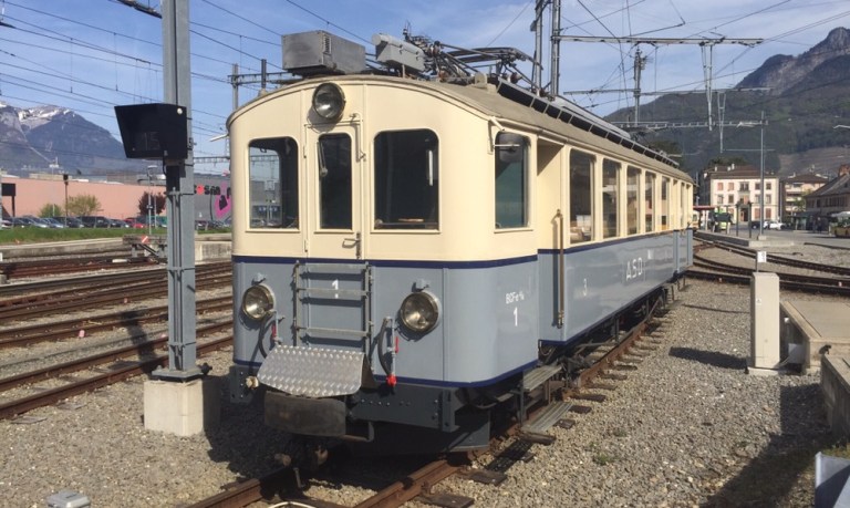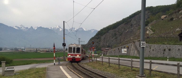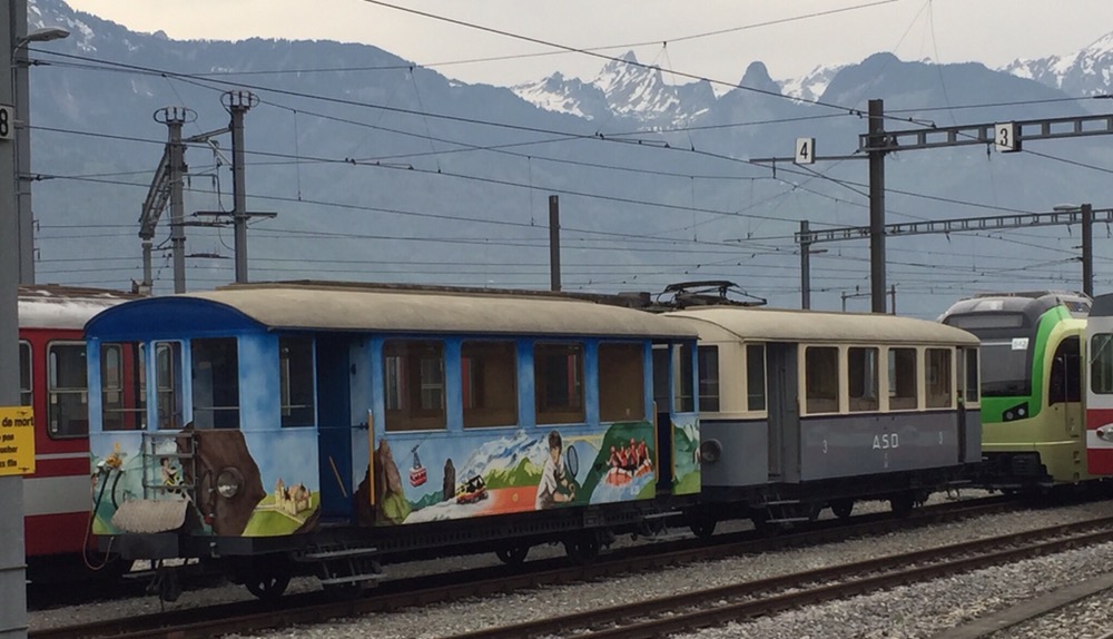 Eher per Zufall entdecken wir einen alten Taltriebwagen auf der Fahrt von Monthey nach Aigle. Diese Chance mit einem ehemaligen Birsigtalbahn (BTB) Zug mit ABe 4/4 und zugehörigem Steuerwagen zu reiten, dürfen wir uns nicht entgehen lassen. Wir laufen zurück nach St-Triphon-Village, um den Zug auf der Rückfahrt zu erwischen und