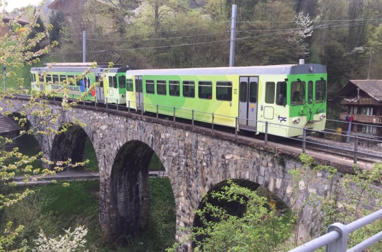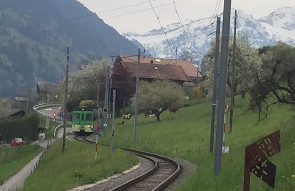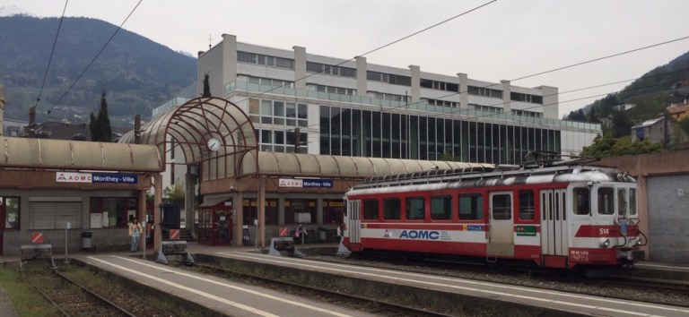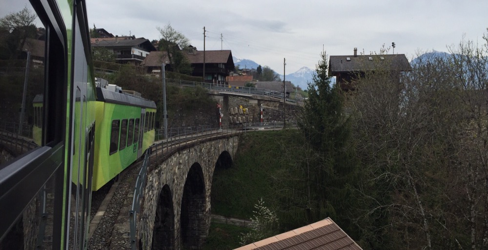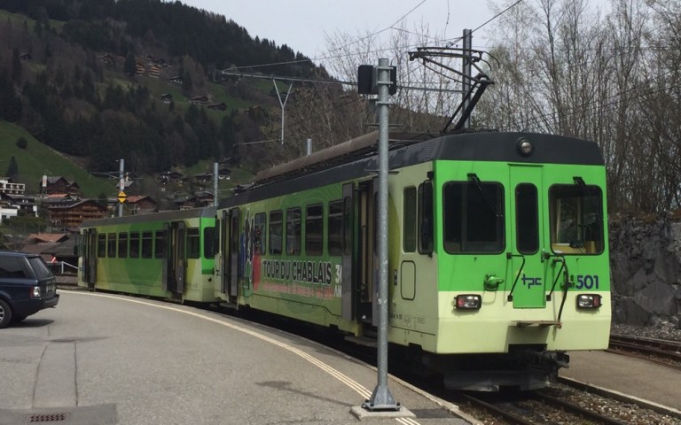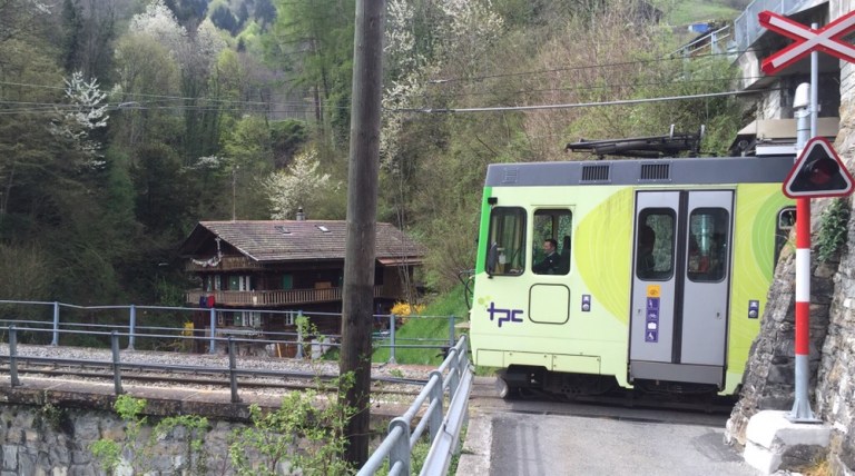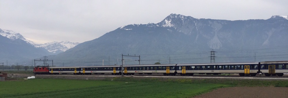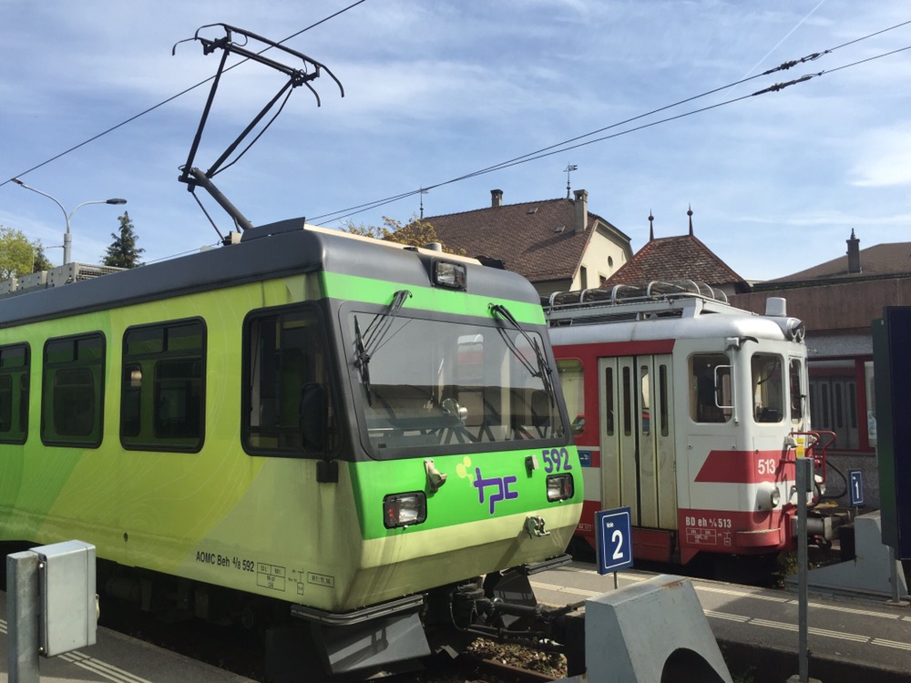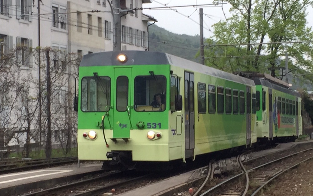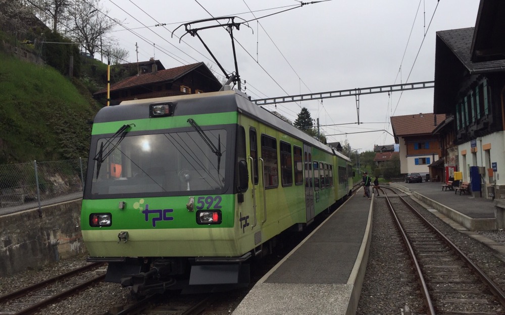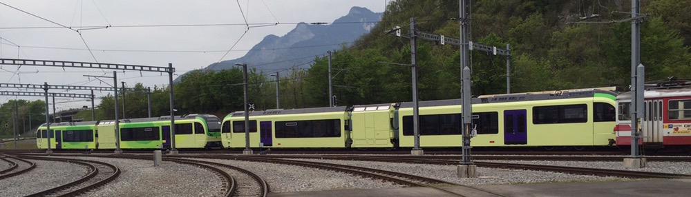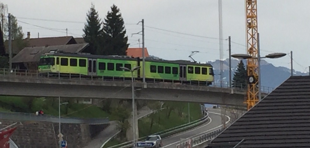 Unaufhaltsam rückt der Tag des Umzugs von Basel, meinem letzten Arbeitsort bei den SBB, nach Brienz in mein Grosselternhaus näher. Am kommenden Mittwochabend, 27.04.2016 ist Basel nur noch ein Eintrag in meinem Lebengeschichtsbuch. Basel war eine schöne, entspannende Stadt, schöner als alle anderen Aufenthaltsorte in meinem Arbeiterleben!Zusammen mit Fabian geniesse ich heute einen letzten Ausflug ins Chablais, zu den TPC (https://de.m.wikipedia.org/wiki/Transports_Publics_du_Chablais) auf die alte AOMC (http://www.drehscheibe-online.de/foren/read.php?17,7796986,7797170). Diese Westschweizer Privatbahn mit einer sehr schönen, informativen, gut aufgebauten Website (http://www.tpc.ch/site/) von Aigle über Ollon – St-Triphon – Monthey – Troistorrents – Val-d’Illiez nach Champéry wird vom kommenden Sonntagabend bzw 25. April bis zum 8. Oktober 2016 auf einem grossen Teil ihres Netzes den Schienenverkehr einstellen. Grund: Die 3 Zahnstangenabschnitte auf der Bergstrecke werden vom System Strub (https://de.m.wikipedia.org/wiki/Zahnradbahn#Systeme), wie auf den anderen Privatbahnen der Region zum System Abt mit 2 Lamellen umgebaut. Zur Wiederinbetriebnahme der AOMC wird sodann auch das 850 Volt Gleichstromsystem auf das Westschweizer „Einheitssystem“ für Meterspurbahnen, 1500 Volt umgebaut. Bis auf 2 auch schon bald 20-jährige Triebzüge (Beh 4/8 591-592, 2001j werden per Anfang Oktober 2016 alle alten Adhäsions- und Zahnradtriebwagen (über 15 Stück) und unzählige Anhängewagen auf einen Schlag ausrangiert und durch 7 neue Züge des Typs GTW Beh 2/6 (http://www.bahnonline.ch/bo/blog/5402/nouveau-materiel-roulant-sur-laomc-livraison-dune-premiere-rame-flambant-neuve.htm) von Stadler Bussnang ersetzt.