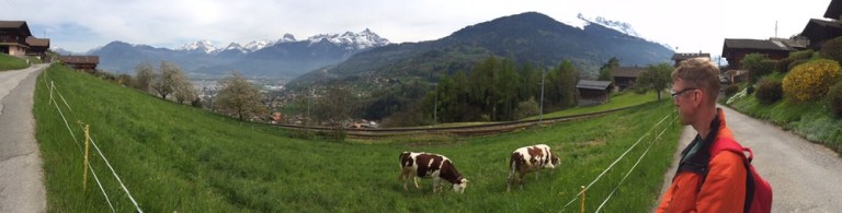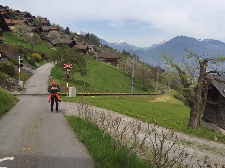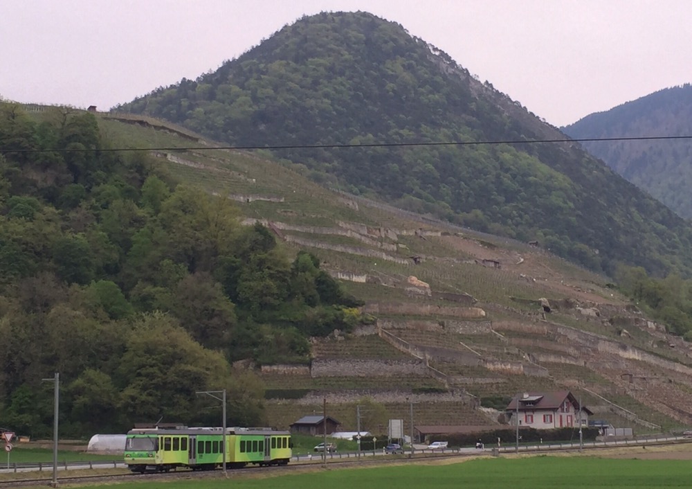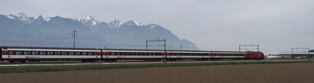 7 Uhr vom Davidsboden in Basel weg, 8.30 Uhr treffe ich einen fröhlich quasselnden Fabian in Bern. Toll mal wieder einen Tagesausflug mit einem anderen ‚Pufferküsser‘ machen zu können. Es ist ein herrlich milder Frühlingstag, wenn auch schon bald erste Dunstschlieren eine Schlechtwetterfront ankündigen. 10.20 in Aigle (http://www.aigle-tourisme.ch/de/index.cfm).