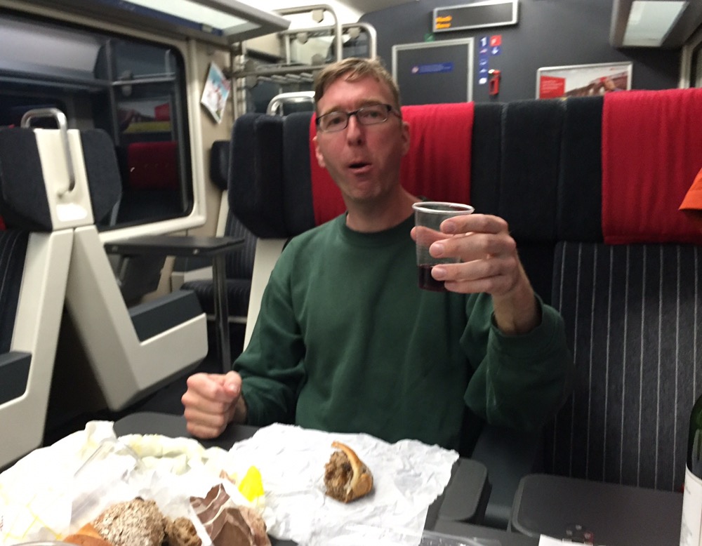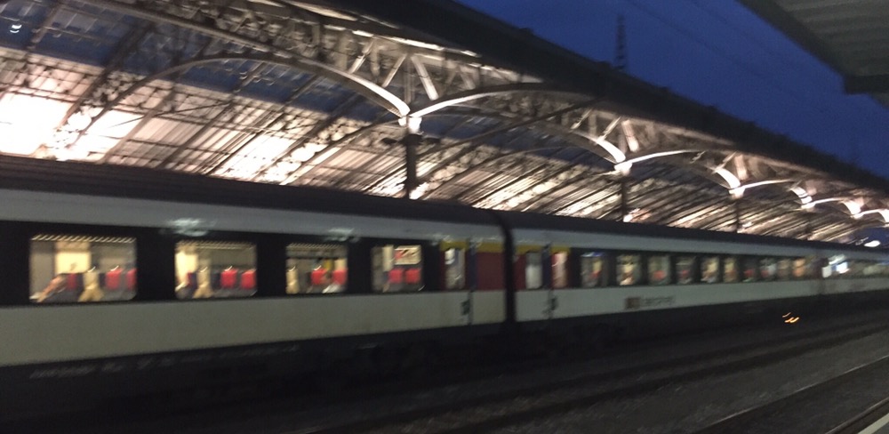 Kurze Shoppingpause bevor wir in einem IR nach Bern reisen. Mangels Speisewagen haben wir uns in Lausanne mit dem Nötigsten eingedeckt, um das in Troistorrents eingekaufte ‚Pain artisanal avec des raisins‘ nicht trockenen Halses geniessen zu müssen.