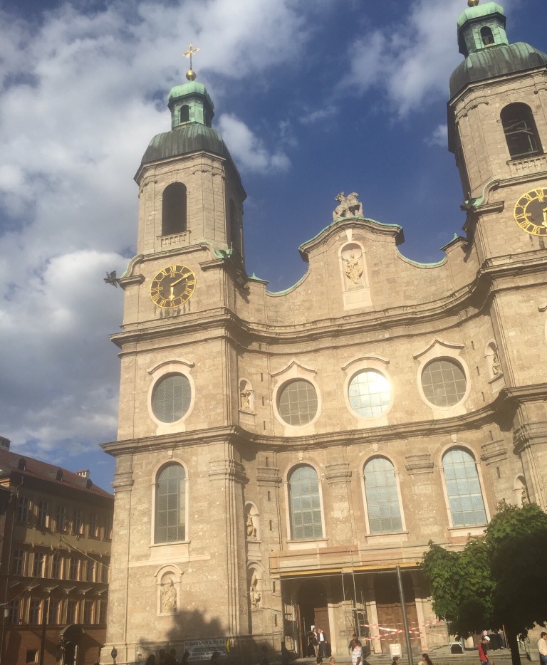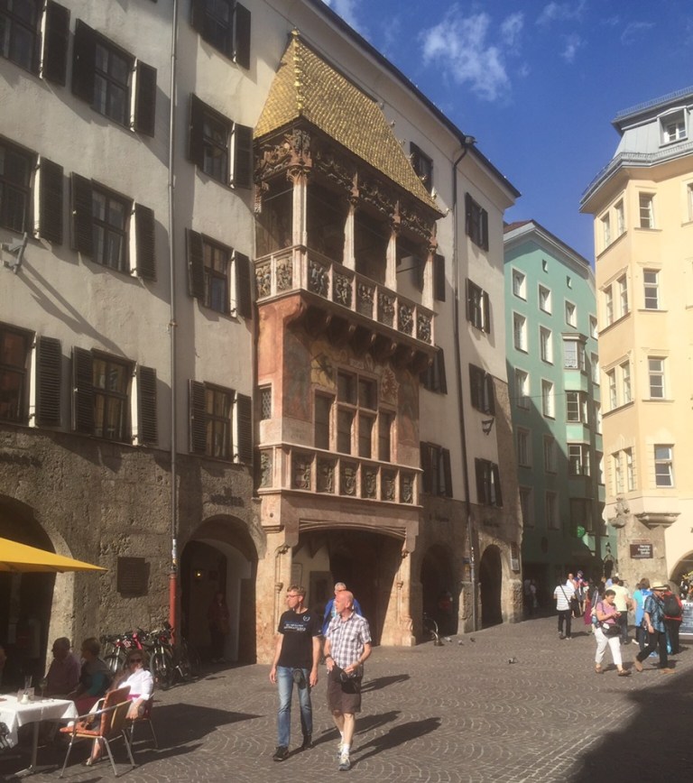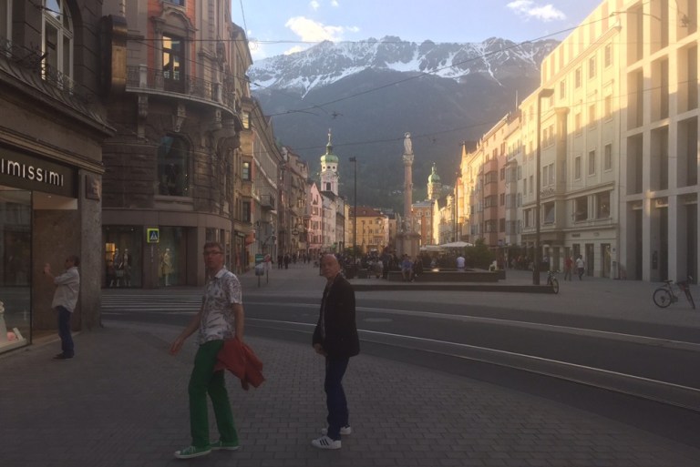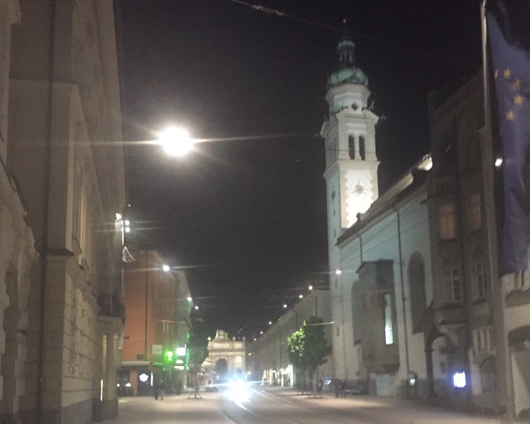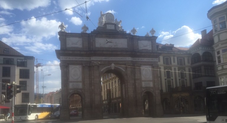 16.16 Ankunft in Innsbruck Hbf. Es ist warm draussen. 5 Minuten Spaziergang ins Hotel Sailer, Zimmerbezug, kurze Hosen und frisch machen. Gemeinsamer Stadtrundgang zur Triumpfpforte –