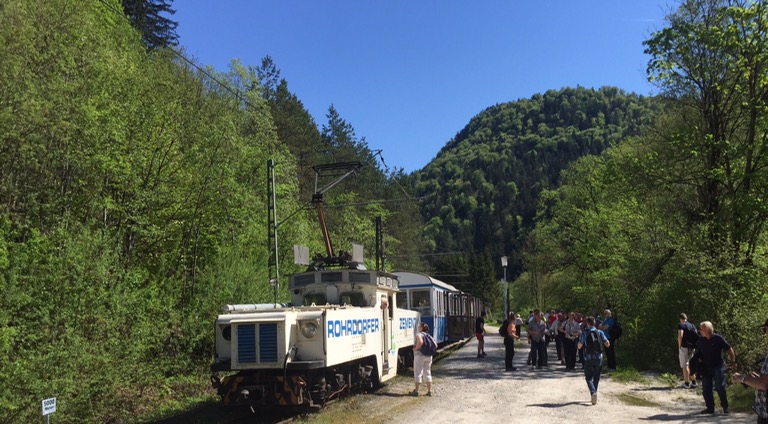 In Kiefersfelden (https://de.m.wikipedia.org/wiki/Kiefersfelden) marschieren wir eine Viertelstunde weit zur Steinbruchbahn, dem Wachtl-Express (http://www.entlang-der-gleise.de/Feldbahnen/Kiefersfelden-Wachtl-Express.html).
