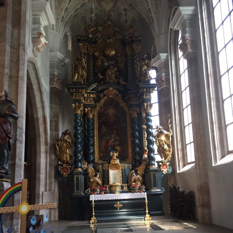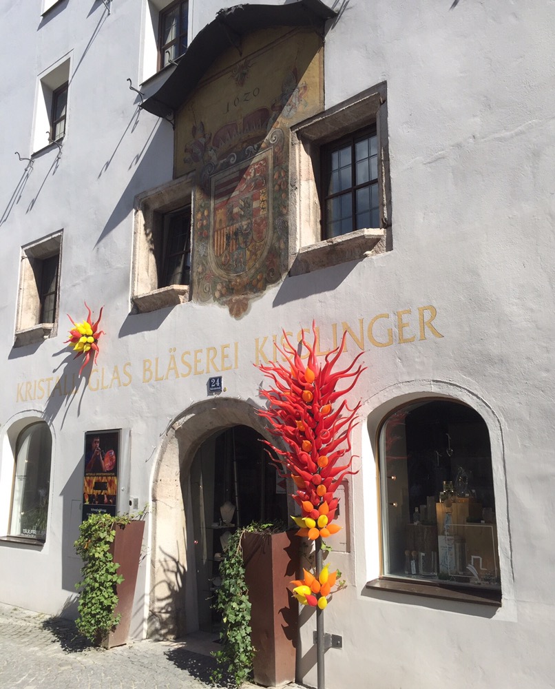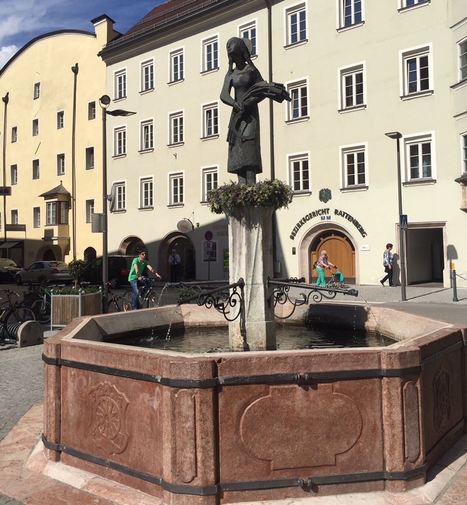 erzählt uns allerlei Wissenswertes und führt uns zu all den weiteren Sehenwürdigkeiten: Stadtpfarrkirche, Stadtbrunnen der Heiligen Notburga, Glasbläsereien, Inntor, Augustinermuseum, Nagelschmiedhäusern.