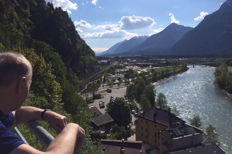 Zuguterletzt empfiehlt Thomas uns auch noch den Aufgang zum Schlossberg, von wo aus Mann eine herrliche Aussicht übers Unterinntal haben soll. Thomas wird uns am Freitag auch durch Innsbruck geleiten und vieles zu erzählen wissen.