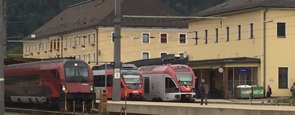 erreichen bei Toblach den Scheitelpunkt dieser Strecke auf 1’211 Metern über Meer und fahren dann weiter in das österreichische Pustertal nach Lienz. Lienz ist eine kleine quirlige Stadt, die ihre Existenz primär der Südbahn (Maribor/Marburg – Klagenfurt – Lienz – Franzensfeste verdankt. Hier in Lienz ist nämlich der Übergang von der Flachlandbahn mit 1-5 Promille Steigung, zur Gebirgsbahn mit bis zu 25 Promille Steigung und Gefälle.