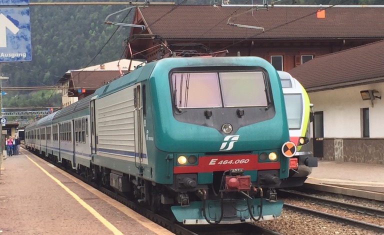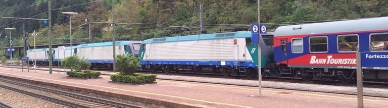 40 Kilometer weiter und über 600 Meter tiefer unten, in Franzensfeste/Fortezza müssen wir erneut umsteigen, haben nun aber fast 40 Minuten Zeit, um das Treiben auf dem grossen Überhol- und Abzweigebahnhof zu beobachten.