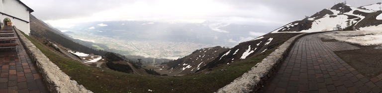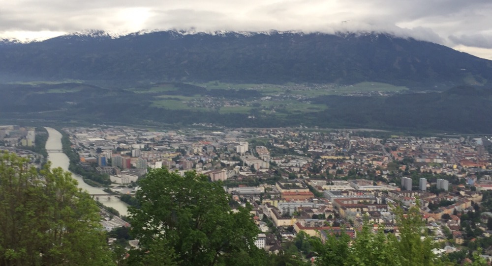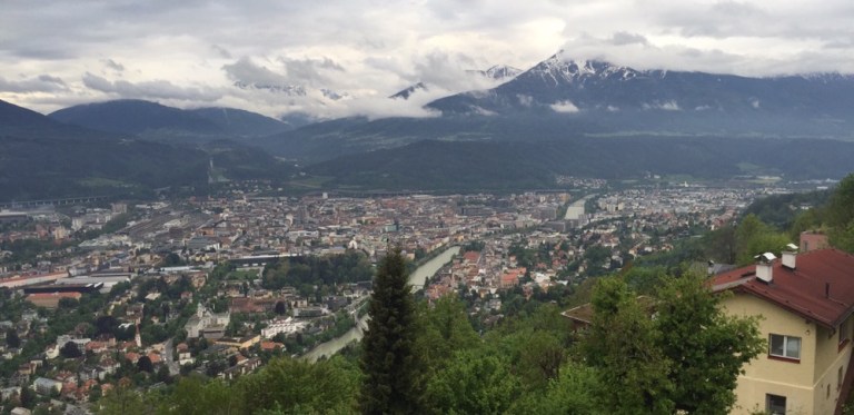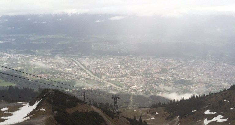 Während der Altstadtführung war es mehrheitlich trocken, kaum auf Seegrube angekommen beginnt es zu nieseln. Noch sehen wir aber ein paar niedrige Berge und die Stadt. Ich geniesse ein paar Minuten draussen in der Ruhe der noch immer im Winterschlaf ruhenden Natur.