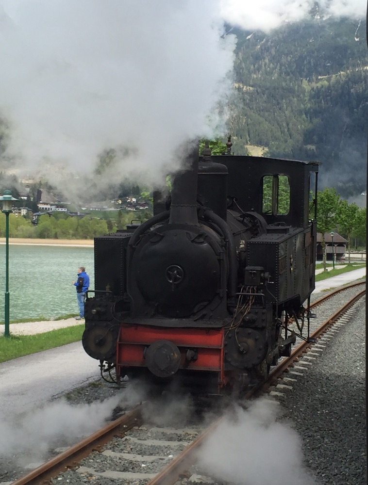 Wir dürfen auch heute etwas länger schlafen und dann gemütlich frühstücken. Aber auch heute hängen die Wolken tief und Regen ist im Anmarsch. 2 Minuten vor 10 fahren wir mit der S-Bahn nach Jenbach, wo wir in die Achenseebahn umsteigen. Jenbach ist einer der seltenen Bahnhöfe mit 3 verschiedenen Spurweiten, 3 verschiedenen Traktionsformen und 3 verschiedenen Betreibern.