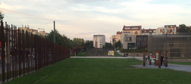weiter bis zur Gedenkstätte Berliner Mauer. Leider bin ich wegen Marathon und Fussballstau zu spät dran. Es dämmert schon. Kurzer Spaziergang und Erinnerungsfotos.