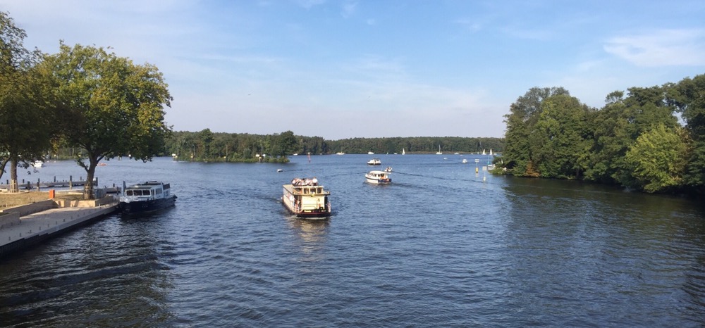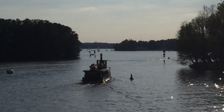 Am anderen Ufer erneut ein kurzer Fussmarsch und dann mit der Tram 68, die über weite Strecken im lichten Heidewald, entlang der Dahme fährt nach Alt Schmöckwitz (https://de.m.wikipedia.org/wiki/Berlin-Schmöckwitz).