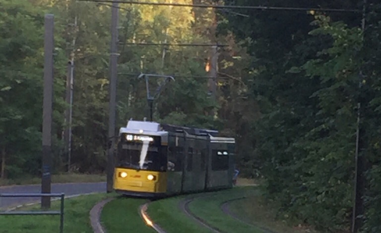 Mit der Strassenbahnlinie 62 fahre ich durch Villenquartiere, ehemalige Bauerndörfer, ausgedehnte Wälder und Stadtquartiere bis Köpenik (https://de.m.wikipedia.org/wiki/Berlin-Köpenick),