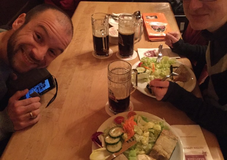 19 Uhr mit Jana + Felix vor dem Handwerkerhof verabredet habe. Herzliches Wiedersehen, reger Erlebnis und Erkenntnisaustausch. Werde von den 2 Freunden zum gemeinsames Abendessen mit Dunkelbier im kleinen Brauhaus der Barfüsser eingeladen. Vielen lieben Dank!