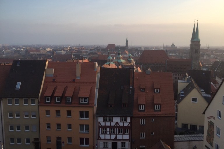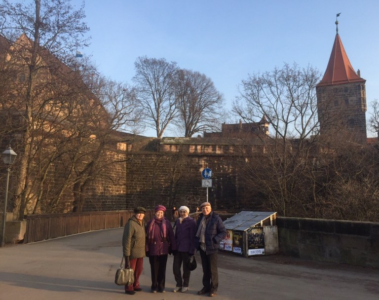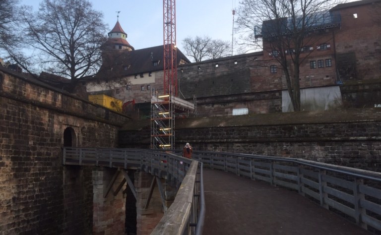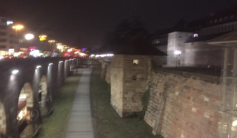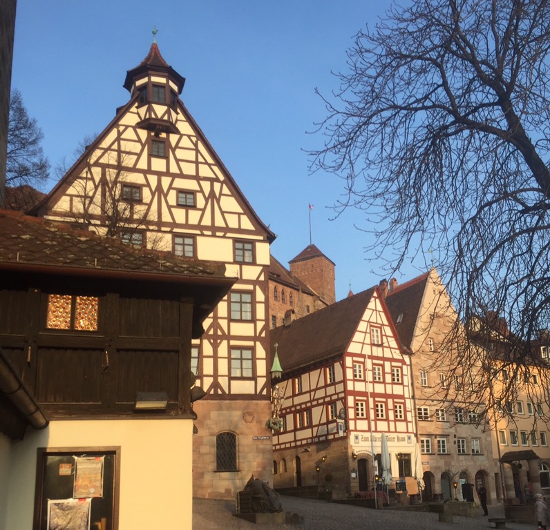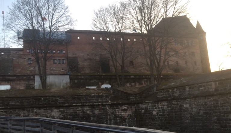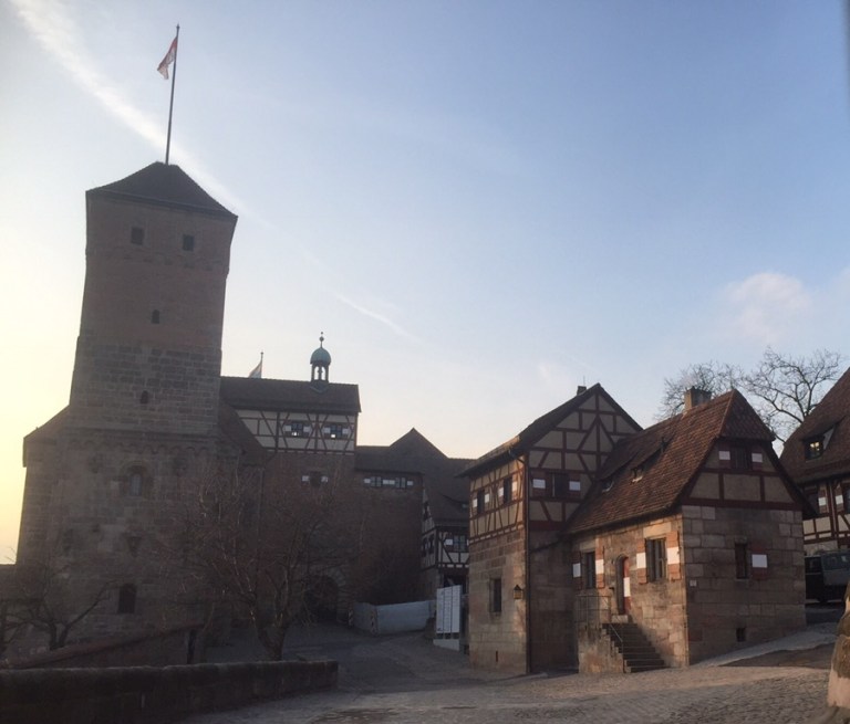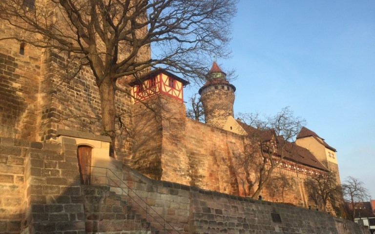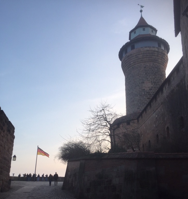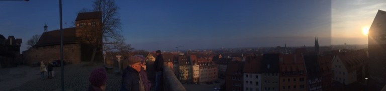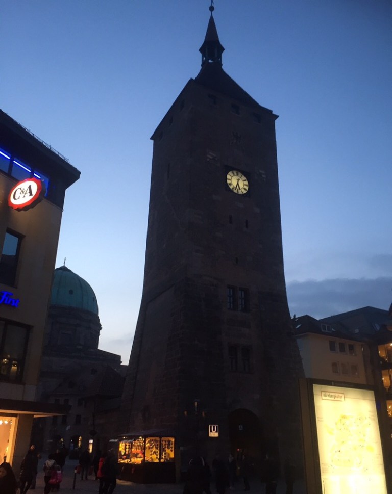 15.45 Uhr, zu Fuss, mit U-Bahn und Tram zum Maxfeld und zu Fuss entlang der alten Mauern zum Tiergärtnertor und rauf zur Kaiserburg.