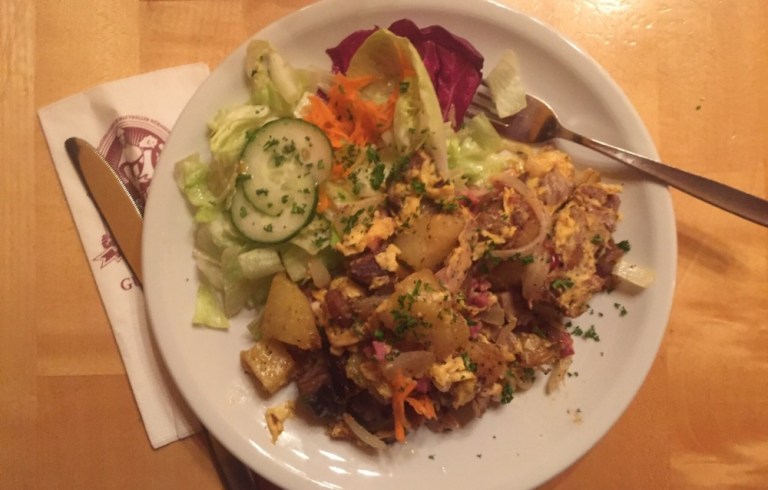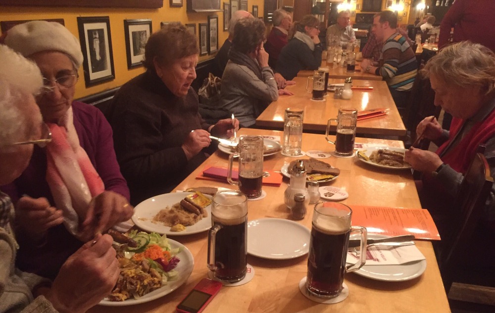 Im späteren Nachmittag treffen wir uns wieder mit Emils Frauen in der Stadt und gehen gemeinsam zum Trinken, Essen, Diskutieren und Lachen in die Hausbrauerei und Gaststätte zum Barfüsser im Keller der Mauthalle.