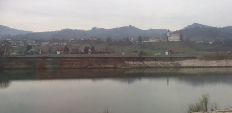 Wegen Bauarbeiten am paneuropäischen Güterverkehrskorridor 10 müssen wir ab hier einen Umweg fahren und erhalten eine Stunde Verspätung. Der Zug schleicht hin und wieder mit kaum mehr als 20 Stundenkilometern über das marode kroatische Gleisnetz.