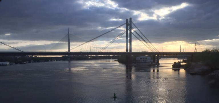Gegen 18 Uhr fahren wir durch Beograder Vororte und über die Sava