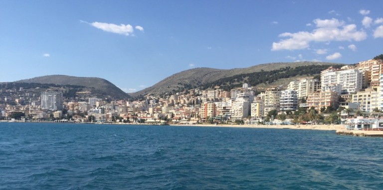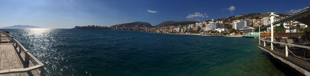 Kurz nach 13 Uhr erreichen wir Saranda (https://de.m.wikipedia.org/wiki/Saranda), die südlichste Stadt unserer Reise. Mittagspause direkt am Strand mit Blick auf die Stadt. Herrliches Essen mit Gemüsesuppe, Brot, Joghurtbrei, viel Salat, verschiedenem Fleisch mit Reis, Linzerkuchen, Wein, Wasser und echtem Kaffee.
